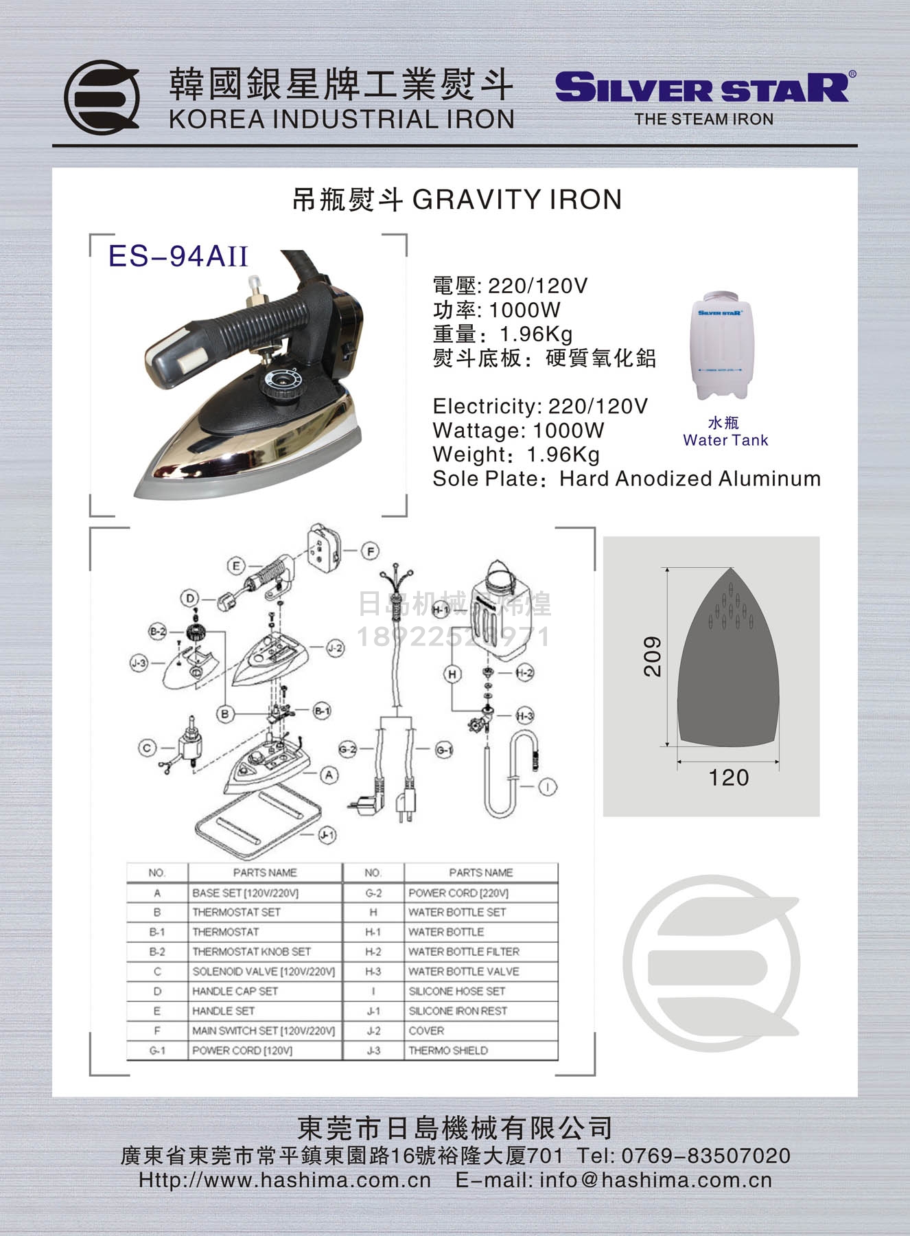 產(chǎn)品名 SILVER STAR銀星牌吊瓶式燙斗/熨斗