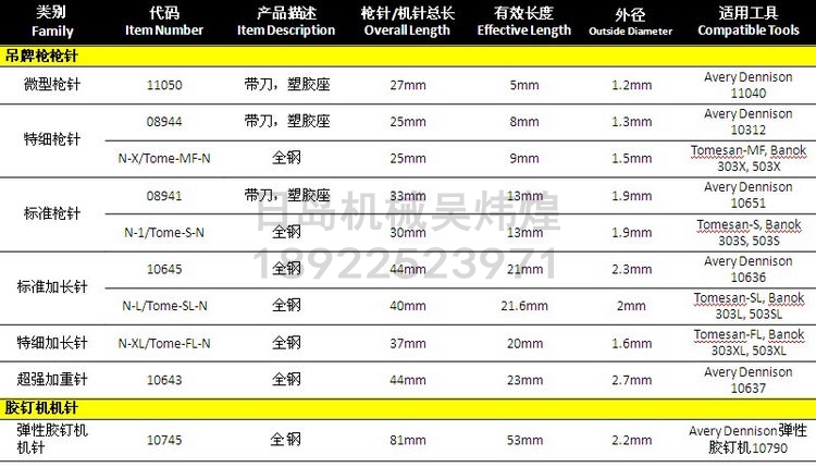 產(chǎn)品名 美國艾利丹尼森AVERY DENNISON吊牌槍針